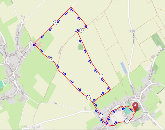 Prendre le chemin du lavoir et tourner à droite au poste de détente gaz. Vous êtes alors sur le chemin du courtil qui fait le tour du village .